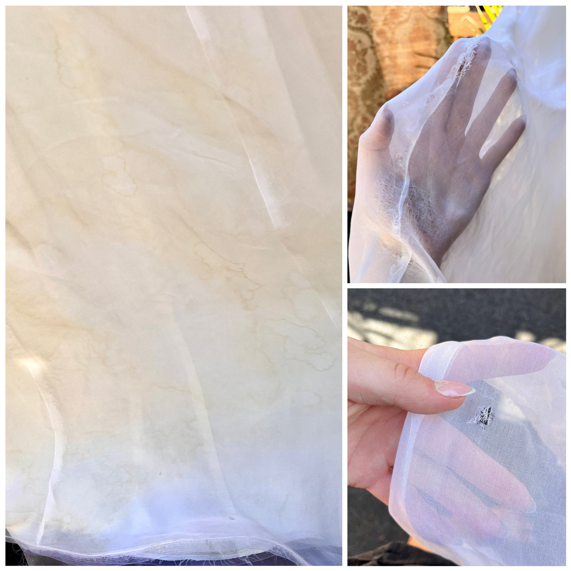 The sheer outer layer of the skirt has some discoloration/ slight watermarks and a few small holes near the seam lines.